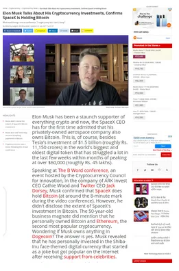 Billionaire founder of Tesla and SpaceX Elon Musk is a heavy investor in cryptocurrency