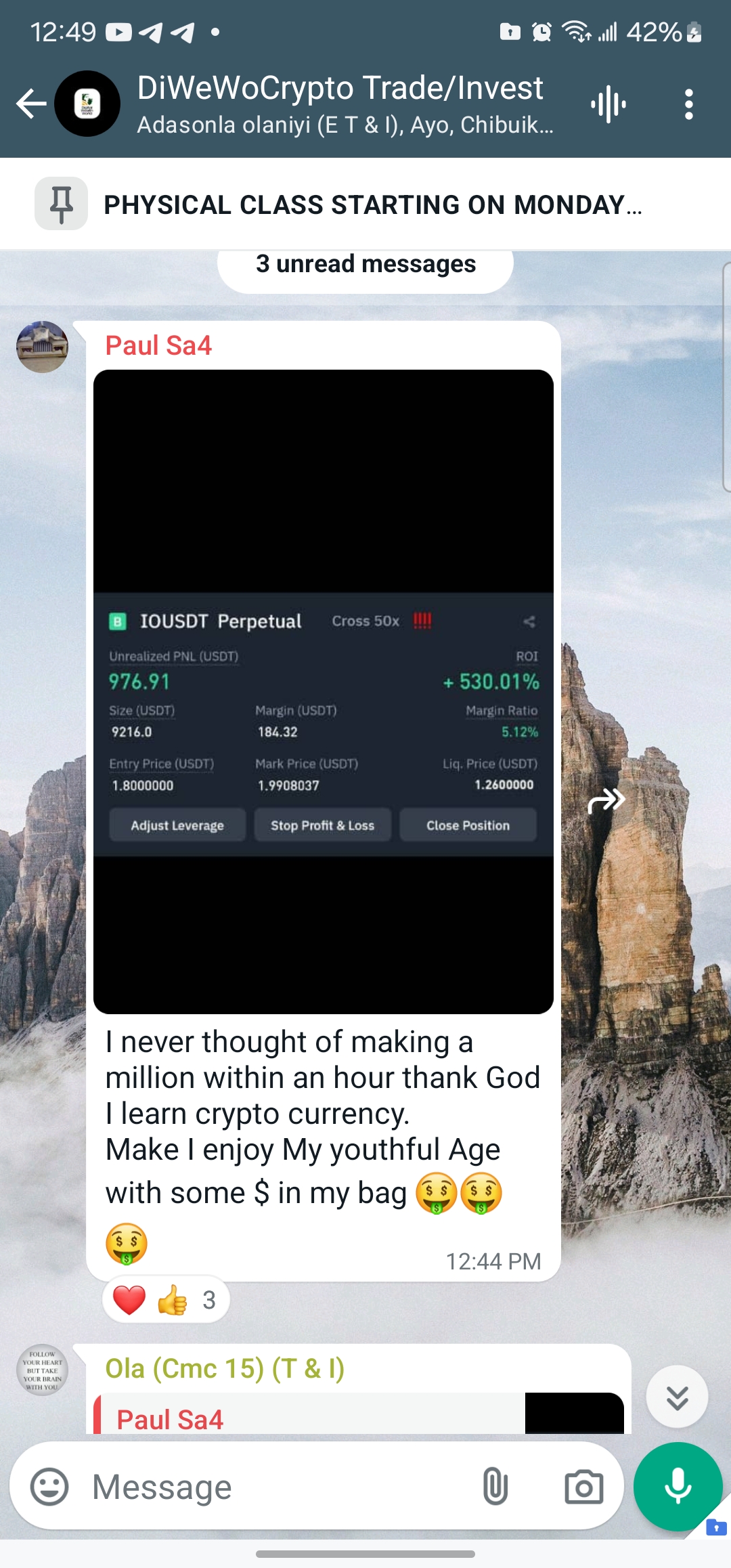 You'd start making money as soon as you study the course by taking all the calls we make in the signal group. All you need to do is enter and exit the market when I give the instruction.