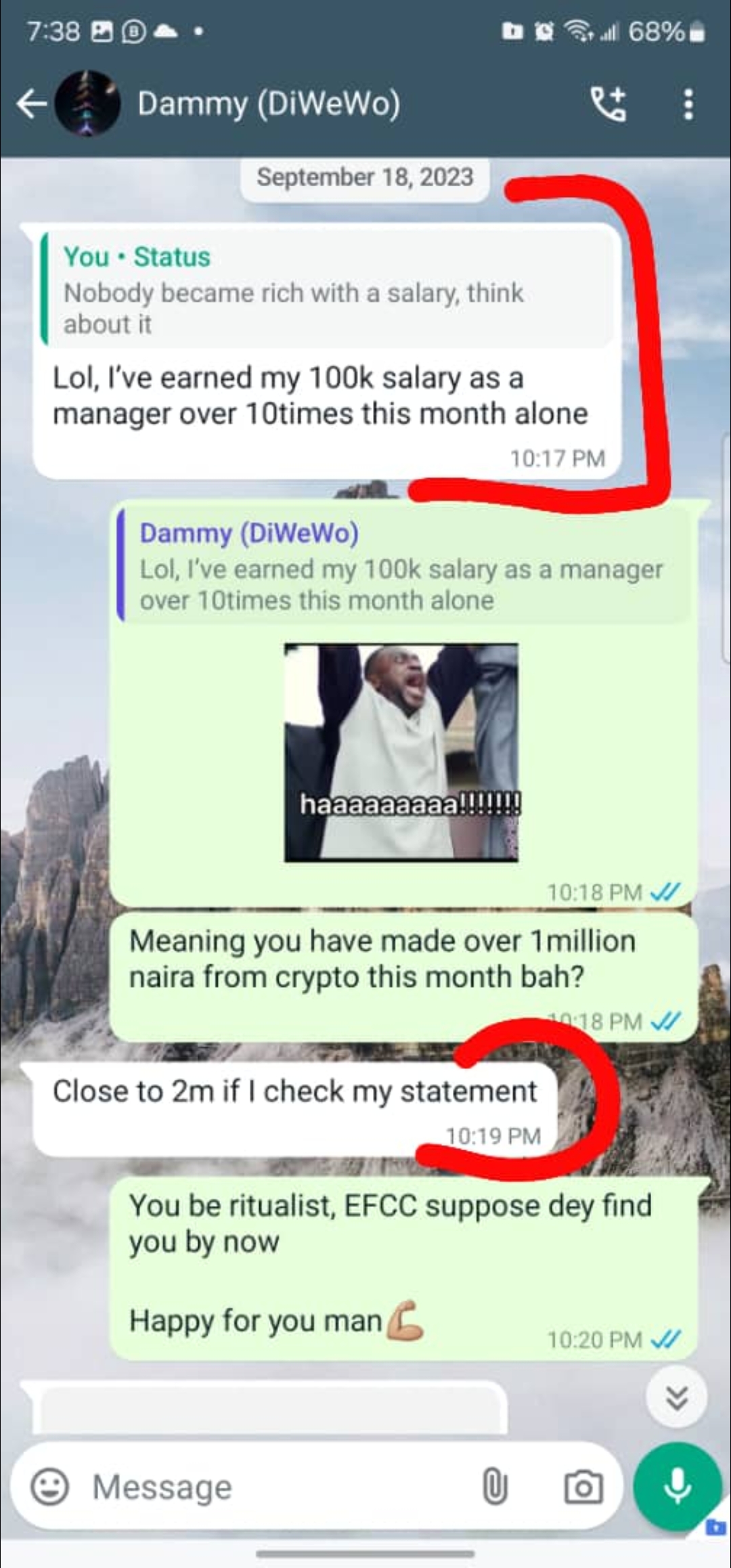 And from that time till now, I've made millions of naira from the crypto market after pouring hundreds of dollars on courses…